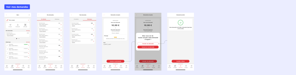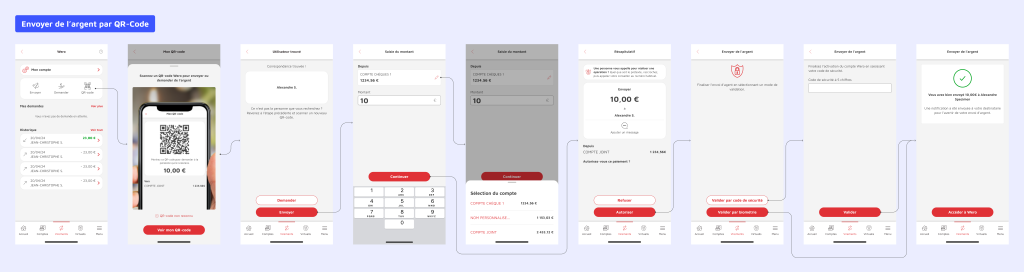 J’ai contribué aux différentes phases du projet, de l’exploration jusqu’à l’itération avec les équipes, à travers l’analyse de la solution existante à l’époque (Paylib), des ateliers de Design Thinking, des focus groups et une veille UX et concurrentielle.