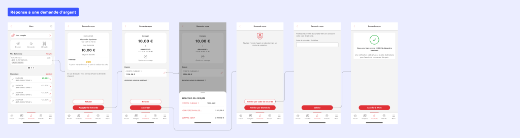 Tout au long du projet, j’ai travaillé en collaboration étroite avec les équipes UI, développement et flux afin de garantir une expérience utilisateur cohérente, conforme aux contraintes techniques, réglementaires et aux objectifs business du Crédit Mutuel Arkéa.